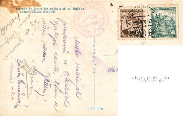 old postcard Bystrice Posta a st dr Ruzdka postalisch gelaufen Erhaltung siehe scans [WerneD78]