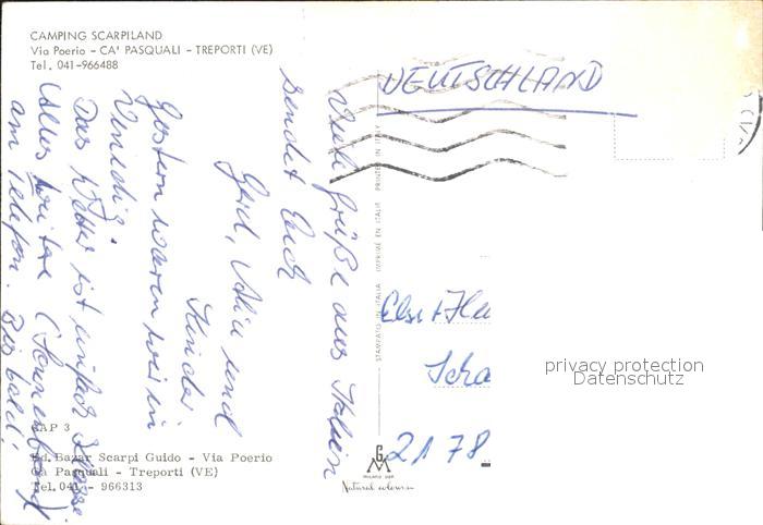 old postcard Ca Pasquali Camping Scarpiland Strand postalisch gelaufen Erhaltung siehe scans