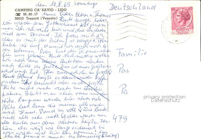 old postcard Ca Savio Camping Ca’Savio Lido postalisch gelaufen Erhaltung siehe scans