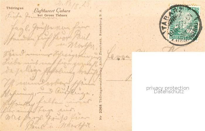 73819229 alte Postkarte Cabarz Tabarz Ortsansicht postalisch gelaufen Erhaltung siehe scans [WerneD78] KatCode: 11110016067064