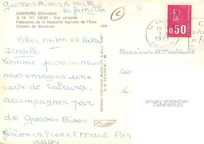 13537640 carte postale Cabourg Colonie de Vacances Fédération de la Mutualité Agricole de l’Eure vue aérienne postalisch gelaufen Erhaltung siehe scans [FriedD77] KatCode: 11170014214117