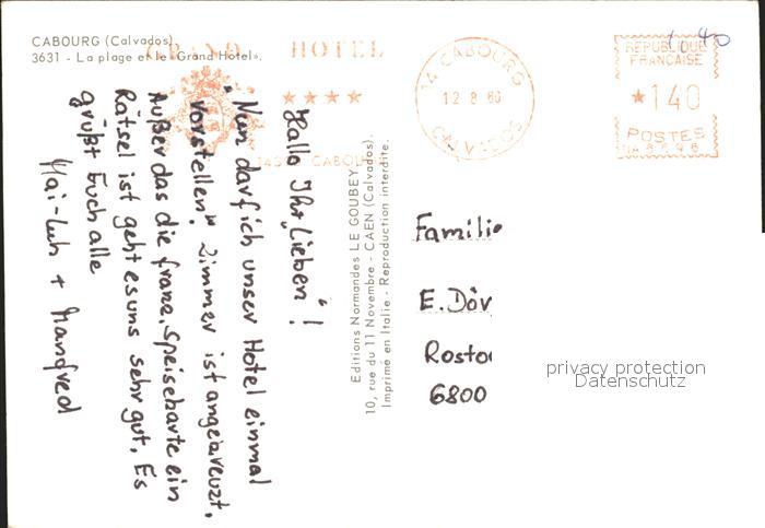 12138193 carte postale Cabourg La plage et le Grand Hotel postalisch gelaufen Erhaltung siehe scans KatCode: 11170014214117