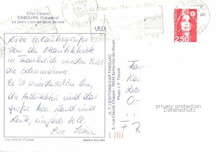 12670136 carte postale Cabourg petit train en bord de mer postalisch gelaufen Erhaltung siehe scans [LiesaD40] KatCode: 11170014214117