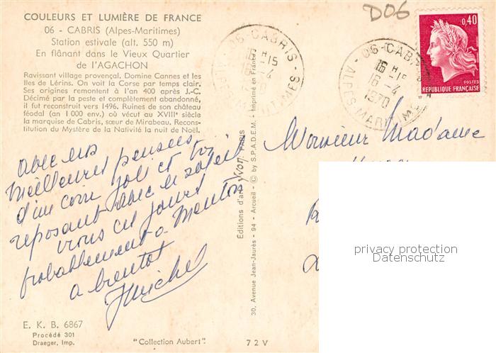 13846715 Cabris 06 Alpes-Maritimes Station estivale En flanant dans le Vieux Quartier de l’Agachon postalisch gelaufen Erhaltung siehe scans [FriedD77] carte postale Frie Katcode 11170006106026