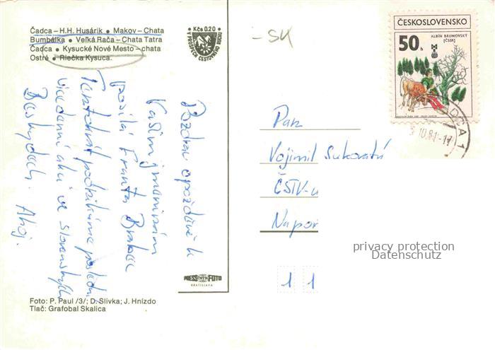 74153138 old postcard Cadca HH Husarik Makov Chata Bumbatka postalisch gelaufen Erhaltung siehe scans [WerneD78] KatCode: 11490