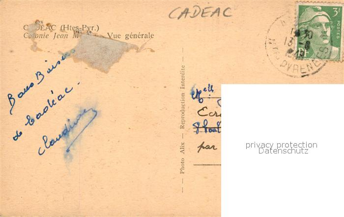 13575974 carte postale Cadeac Colonie Jean postalisch gelaufen Erhaltung siehe scans [WerneD78] KatCode: 11170065265116