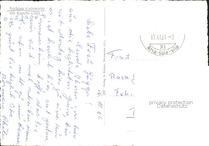 11642515 alte Postkarte Cademario Kurhaus postalisch gelaufen Erhaltung siehe scans KatCode: 11470210660078