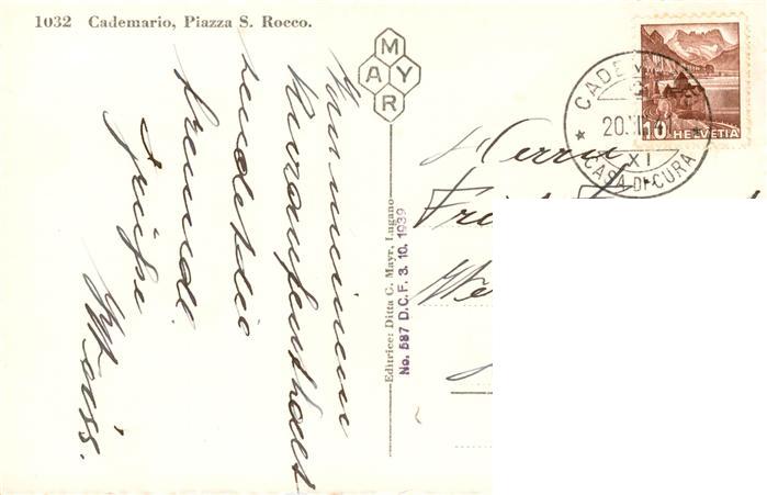 13934408 alte Postkarte Cademario TI Piazza San Rocco postalisch gelaufen Erhaltung siehe scans [FriedD77] KatCode: 11470210660078
