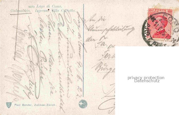 34142713 old postcard Cadenabbia Griante Lago di Como Lombardia IT Ingresso Villa Carlotta postalisch gelaufen Erhaltung siehe scans [WerneD78] KatCode: 11240