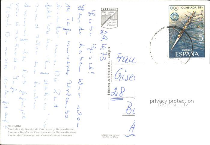 old postcard Cadiz Andalucia Avenidas Ramon Carranza Generalisimo postalisch gelaufen