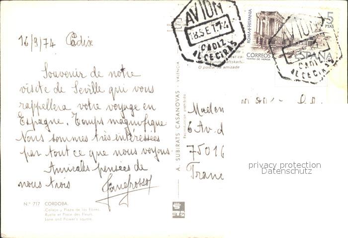 old postcard Cadiz Andalucia Calleja y Plaza de las Flores postalisch gelaufen Erhaltung siehe scans
