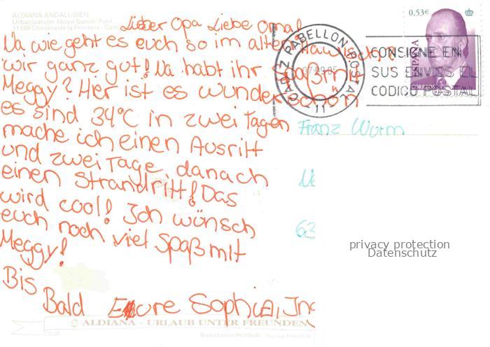 74005695 old postcard CADIZ Andalucia ES Aldiana Andalusien postalisch gelaufen Erhaltung siehe scans [WerneD78] KatCode: 11510