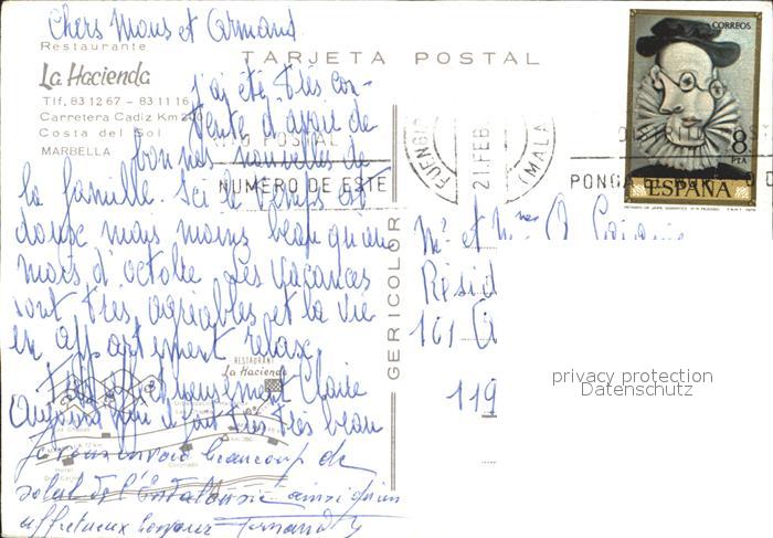 old postcard Cadiz Andalucia Restaurant La Hacienta postalisch gelaufen Erhaltung siehe scans