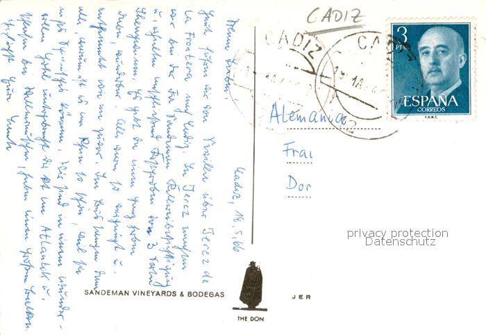 13663962 Cadiz Andalucia Sandeman Vineyards & Bodegas postalisch gelaufen Erhaltung siehe scans [FriedD77] old postcard Frie Katcode 11510