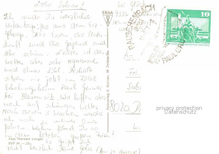 72712316 alte Postkarte Caemmerswalde FDGB Erholungsheim Paul Gruner postalisch gelaufen Erhaltung siehe scans [FriedD77] KatCode: 11110014177300
