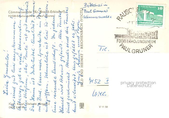 73739487 alte Postkarte Caemmerswalde FDGB Erholungsheim Paul Gruner postalisch gelaufen Erhaltung siehe scans [FriedD77] KatCode: 11110014177300