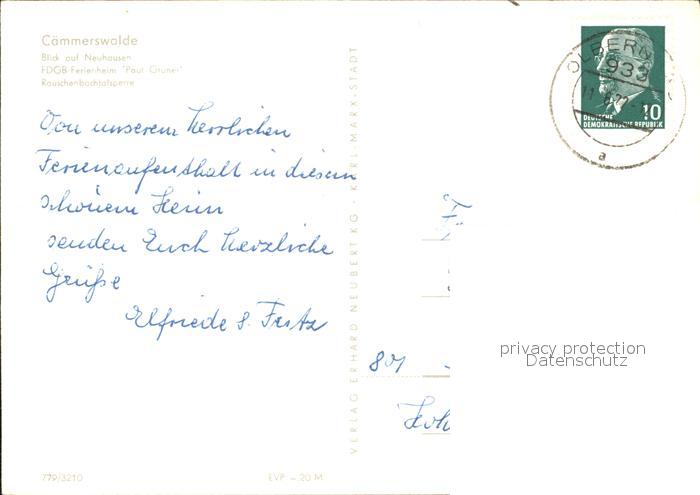 72372935 alte Postkarte Caemmerswalde Neuhausen FDGB Erholungsheim Paul Gruner Rauschenbachtalsperre postalisch gelaufen Erhaltung siehe scans KatCode: 11110014177300