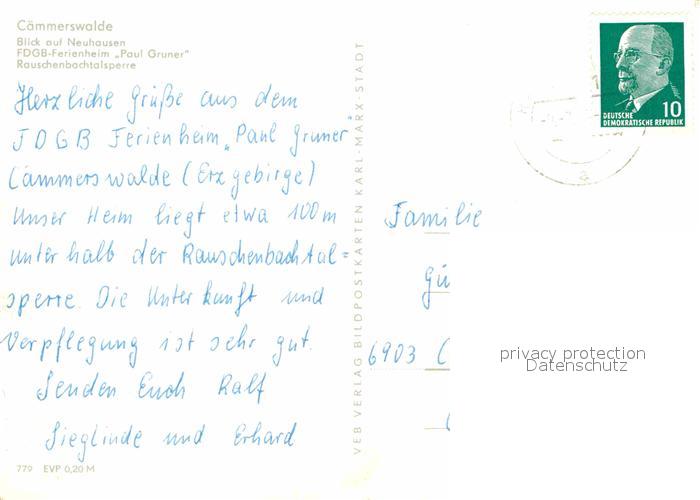 72630712 alte Postkarte Caemmerswalde Neuhausen Ferienheim Paul Gruner Rauschenbachtalsperre postalisch gelaufen Erhaltung siehe scans [LiesaD40] KatCode: 11110014177300