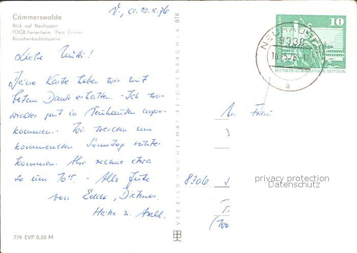 72382900 alte Postkarte Caemmerswalde Neuhausen Rauschenbachtalsperre postalisch gelaufen Erhaltung siehe scans KatCode: 11110014177300