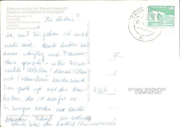 72382639 alte Postkarte Caemmerswalde Schauflugzeug Il 18 Parkanlage Gaststaette postalisch gelaufen Erhaltung siehe scans KatCode: 11110014177300