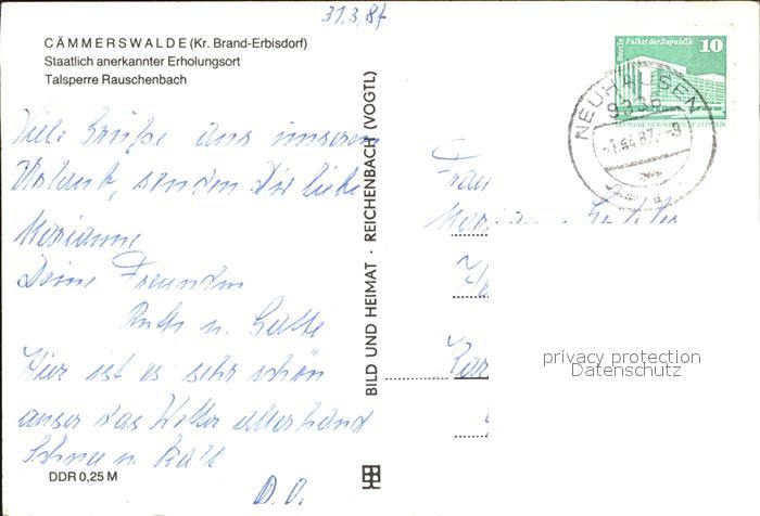 72427288 alte Postkarte Caemmerswalde Talsperre Rauschenbach postalisch gelaufen Erhaltung siehe scans KatCode: 11110014177300