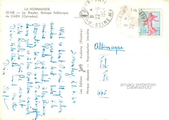13515045 carte postale Caen La Normandi Le Gouter Groupe folklorique postalisch gelaufen Erhaltung siehe scans [WerneD78] KatCode: 11170014214118
