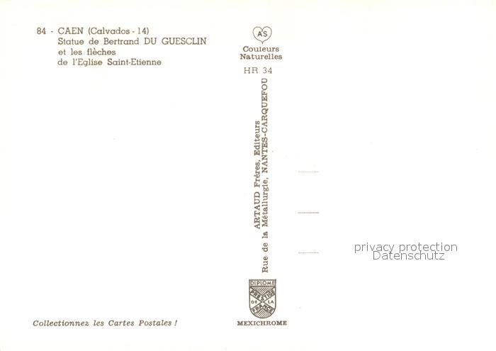 13599689 Caen Statue de Bertrand du Guesclin et les flèches de l’Eglise Saint Etienne postalisch nicht gelaufen Erhaltung siehe scans [FriedD77] Frie Katcode 11170014214118