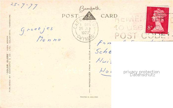 12755728 old postcard Caernarvon Platz postalisch gelaufen Erhaltung siehe scans [AndreD76] KatCode: 11570UKL1L12NC