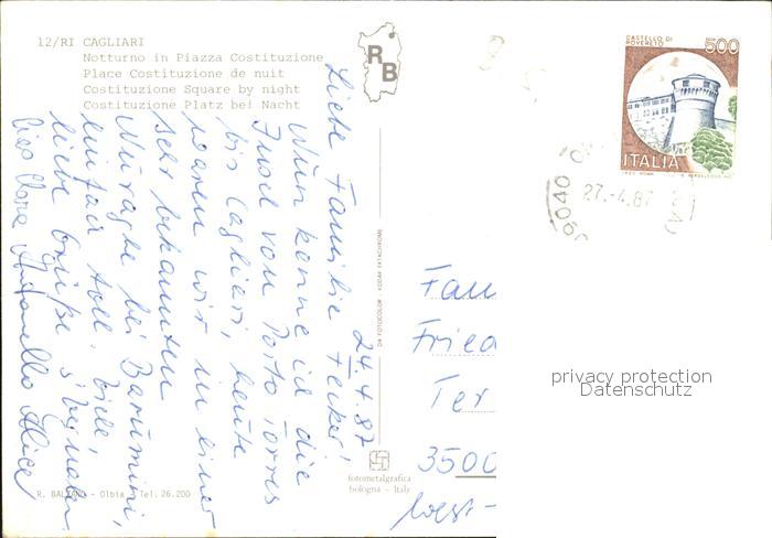 old postcard Cagliari Costituzione Platz bei Nacht postalisch gelaufen Erhaltung siehe scans