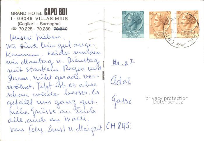 old postcard Cagliari Grand Hotel Capo Boi Pool postalisch gelaufen Erhaltung siehe scans