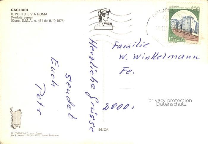 old postcard Cagliari Hafen Via Roma postalisch gelaufen Erhaltung siehe scans