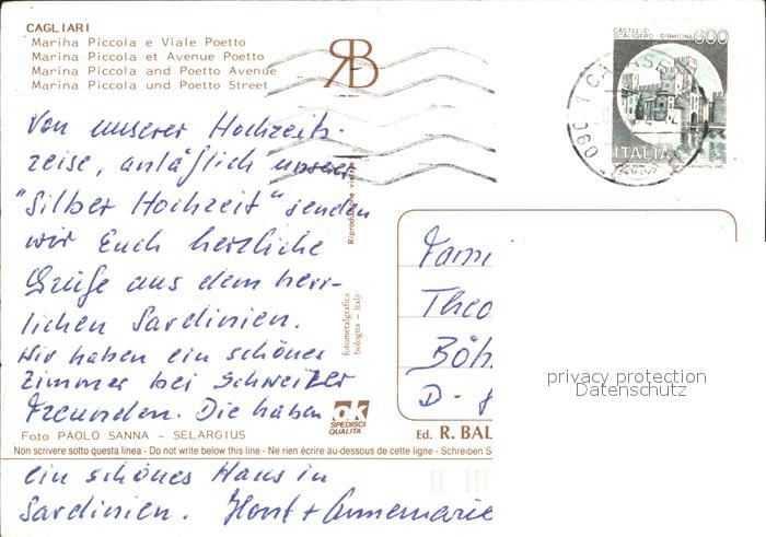 old postcard Cagliari Marina Piccolaund Poetto Strasse postalisch gelaufen Erhaltung siehe scans