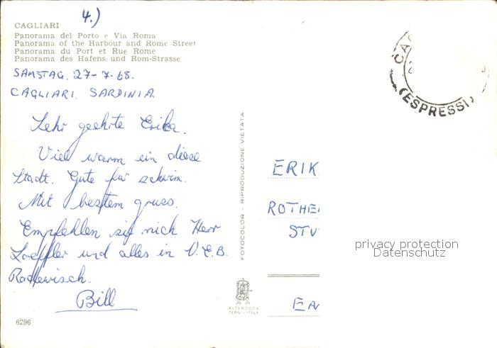 old postcard Cagliari Panorama des Hafens und der Rom Strasse postalisch gelaufen Erhaltung siehe scans