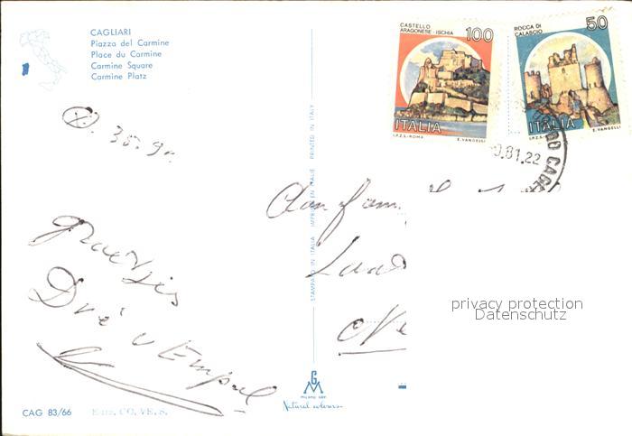 old postcard Cagliari Piazza del Carmine postalisch gelaufen Erhaltung siehe scans