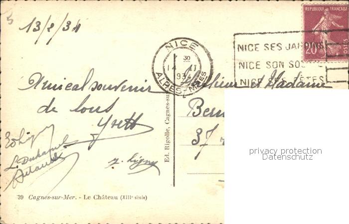 11674714 carte postale Cagnes-sur-Mer Chateau XIII siecle postalisch gelaufen Erhaltung siehe scans KatCode: 11170006106027