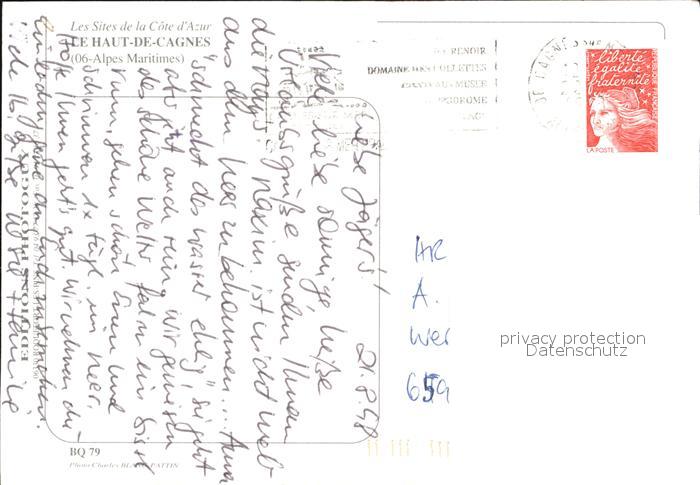 12461037 carte postale Cagnes-sur-Mer Gassen postalisch gelaufen Erhaltung siehe scans KatCode: 11170006106027