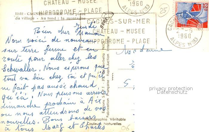 13493029 carte postale Cagnes-sur-Mer Une place du village au fond la montagne postalisch gelaufen Erhaltung siehe scans [FriedD77] KatCode: 11170006106027