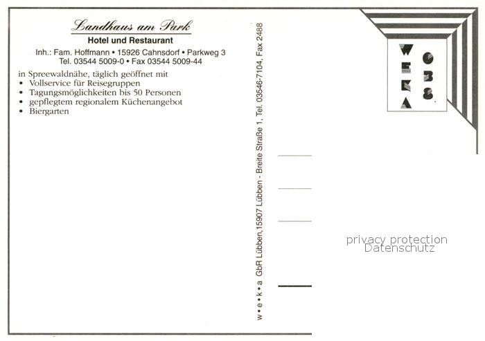 73574254 Cahnsdorf Landhaus am Park Hotel Restaurant postalisch nicht gelaufen Erhaltung siehe scans [FriedD77] KatCode: 11110012061320