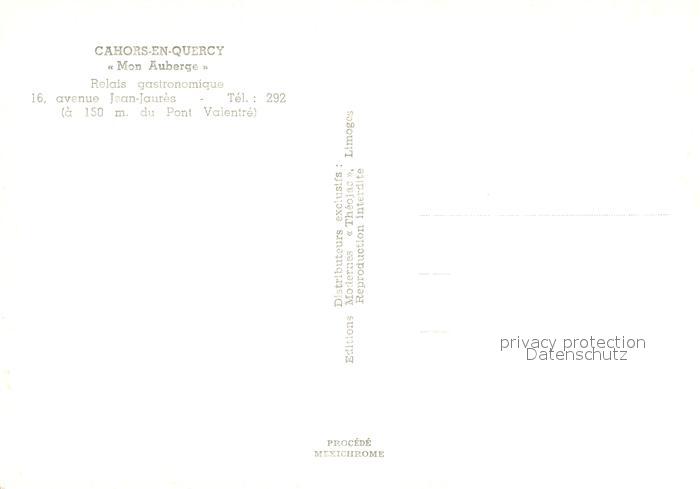 13025447 Cahors en Quercy Hotel Mon Auberge postalisch nicht gelaufen Erhaltung siehe scans [PaolaD17] KatCode: 11170046146042