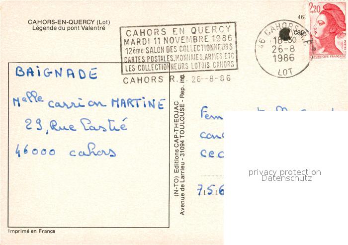 13213501 carte postale Cahors en Quercy Legende du pont Valentre postalisch gelaufen Erhaltung siehe scans [WerneD78] KatCode: 11170046146042