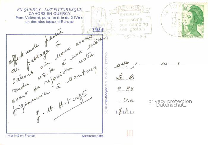 12687161 carte postale Cahors en Quercy Pont Valentre pont fortifie du XIV und plus beaux d Europe postalisch gelaufen Erhaltung siehe scans [WerneD78] KatCode: 11170046146042