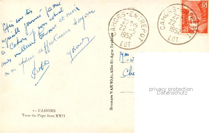13541439 carte postale Cahors Tour du Pape Jean XXII postalisch gelaufen Erhaltung siehe scans [FriedD77] KatCode: 11170046146042