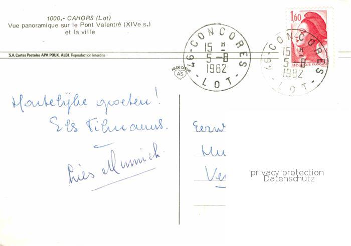 12665014 carte postale Cahors Vue panoramique sur le Pont Valentre et la ville postalisch gelaufen Erhaltung siehe scans [FriedD77] KatCode: 11170046146042