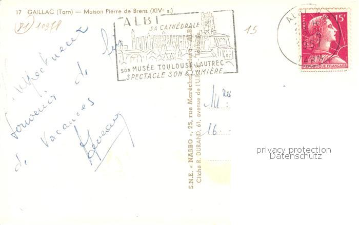 13566442 carte postale Caillac Maison Pierre de Brens postalisch gelaufen Erhaltung siehe scans [WerneD78] KatCode: 11170046146044