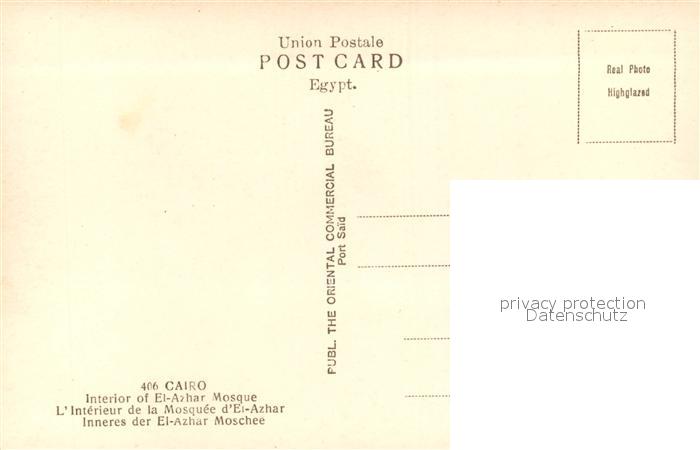 Cairo Egypt El Azhar Moschee postalisch nicht gelaufen Erhaltung siehe scans [KathaD81]