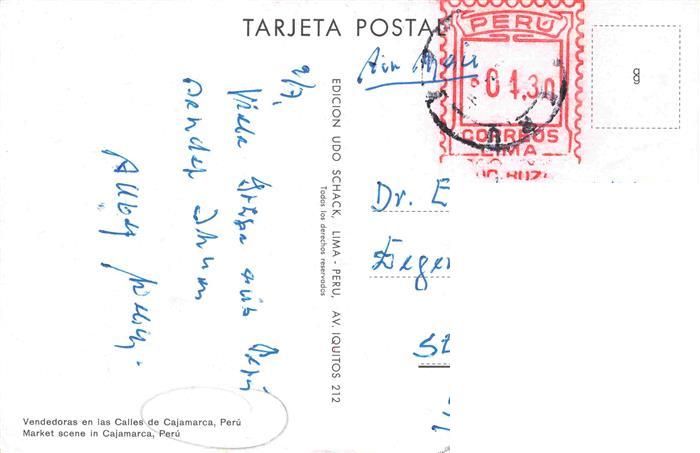 73973533 old postcard Cajamarca Peru Vendedoras en las calles postalisch gelaufen Erhaltung siehe scans [FriedD77] KatCode: 17120