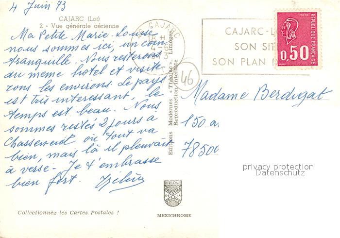13162339 carte postale Cajarc Vue aérienne postalisch gelaufen Erhaltung siehe scans [FriedD77] KatCode: 11170046246045