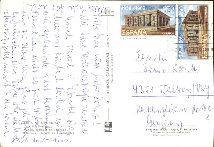old postcard Cala Blanca Menorca postalisch gelaufen