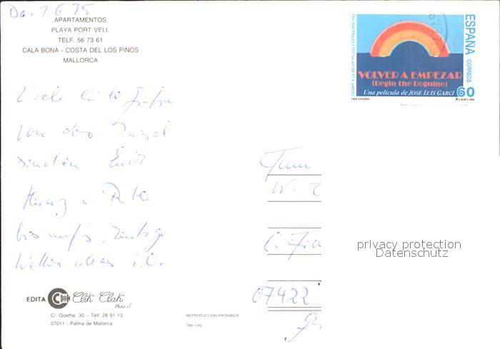 old postcard Cala Bona Apartamentos Playa Port Vell postalisch gelaufen Erhaltung siehe scans