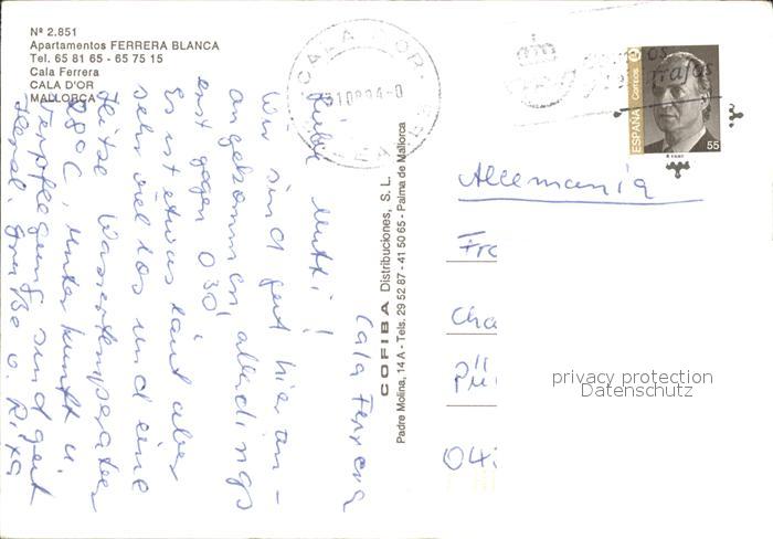 old postcard Cala d Or Apatamentos Ferrera Blanca postalisch gelaufen Erhaltung siehe scans